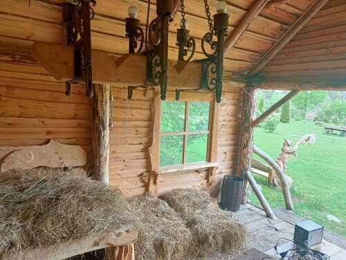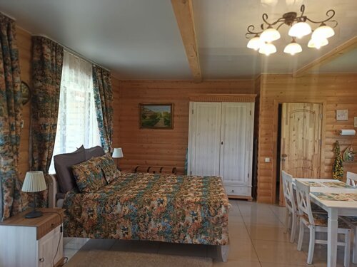 Это одно из самых приятных и атмосферных мест, где мы, путешественники с большим стажем, когда-либо останавливались. Чудесные домики в лесу, со всеми мыслимыми и немыслимыми удобствами, расположенные на большом участке земли, вокруг тишина, красота, покой! Комнаты большие, уютные, отделанные деревом, с полноценной кухней. Баня - просто выше всяких похвал! Спасибо заботливым радушным хозяевам, встретили нас как дорогих гостей. До музея Михайловское около 2 км. Прекрасный отдых!