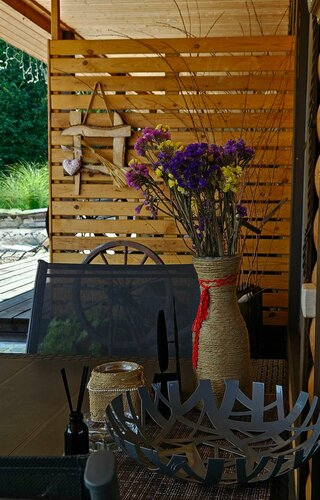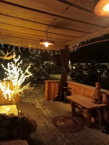 Это место для тихого время препровождения,в круги семьи или близких,каждый заботится о тишине вокруг себя и создается ощущение,что вы отдыхаете одни.Баня это отдельная история….веники,вкусный чай с мёдом и клюквой,все в бане с душой и комфортном,можно посидеть как в гостиной между парением или на террасе.